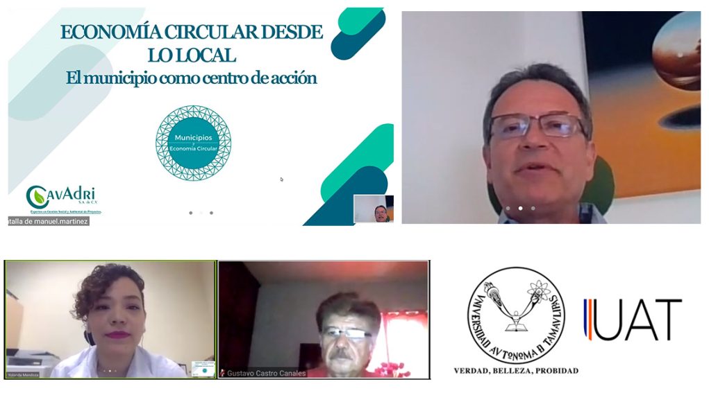 Al ponerse en marcha la Tercera Edición de la Semana de la Sustentabilidad organizada en línea por la Universidad Autónoma de Tamaulipas (UAT) se impartió la conferencia virtual “Economía Circular desde lo local; el municipio como línea de acción”, que abordó situaciones referentes al sistema de aprovechamiento de recursos, donde se privilegia la producción de bienes y servicios de manera sostenible.