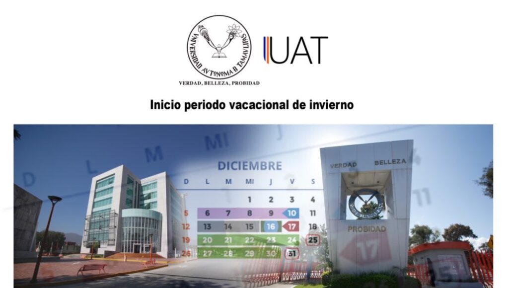 CD. VICTORIA, TAMAULIPAS, 19 DE DICIEMBRE DE 2021.-A partir de este 20 de diciembre, la Universidad Autónoma de Tamaulipas (UAT) inicia el período vacacional de invierno en todas las dependencias académicas y administrativas de la casa de estudios en el estado.