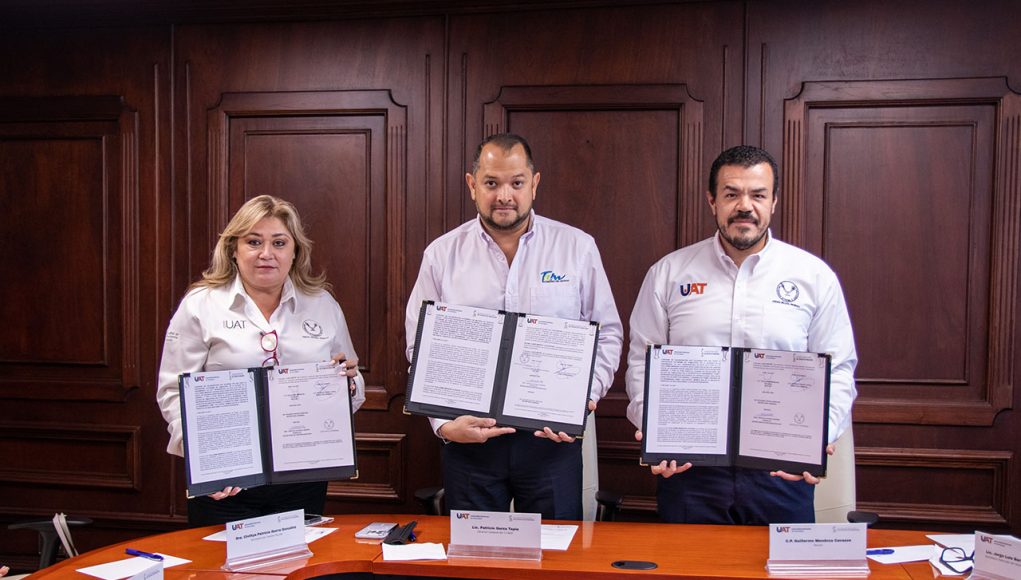 La Universidad Autónoma de Tamaulipas (UAT) y el Colegio de Bachilleres del Estado de Tamaulipas (COBAT) llevaron a cabo la firma de convenios específicos y de colaboración académica que establecen las bases generales y mecanismos que benefician a estudiantes de ambas instituciones en temas de servicio social, apoyo al deporte y fomento a una segunda lengua.
