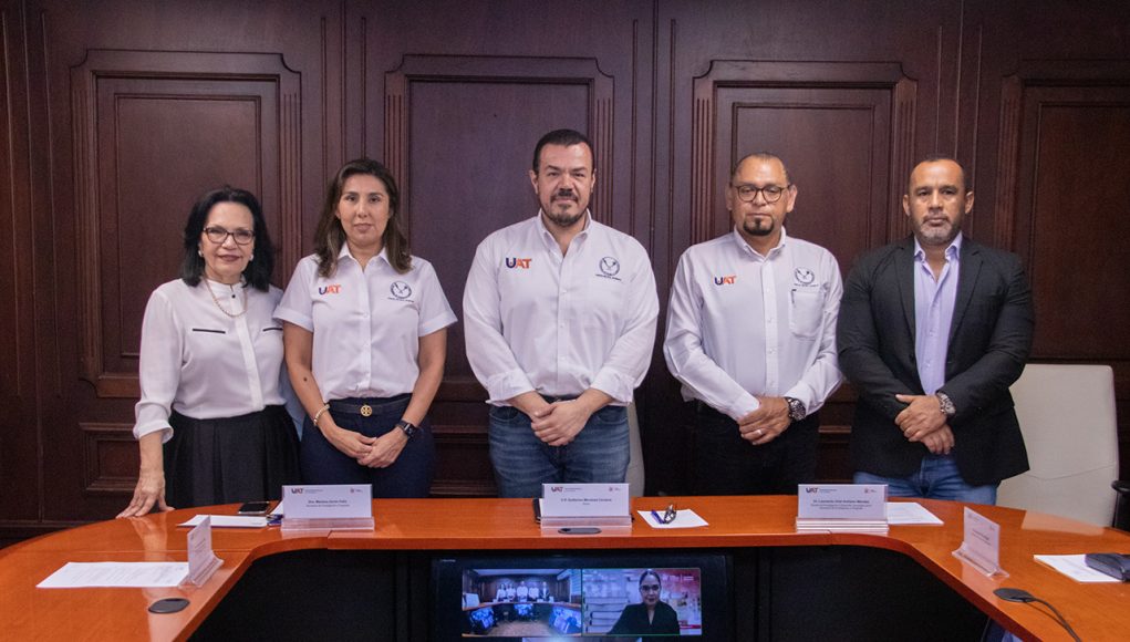 El evento se desarrolló de manera virtual en la Sala de Juntas de la administración central, y fue presidido por el C. P. Guillermo Mendoza Cavazos, rector de la Universidad, quien estuvo acompañado por la Dra. Mariana Zerón Félix, secretaria de Investigación y Posgrado.