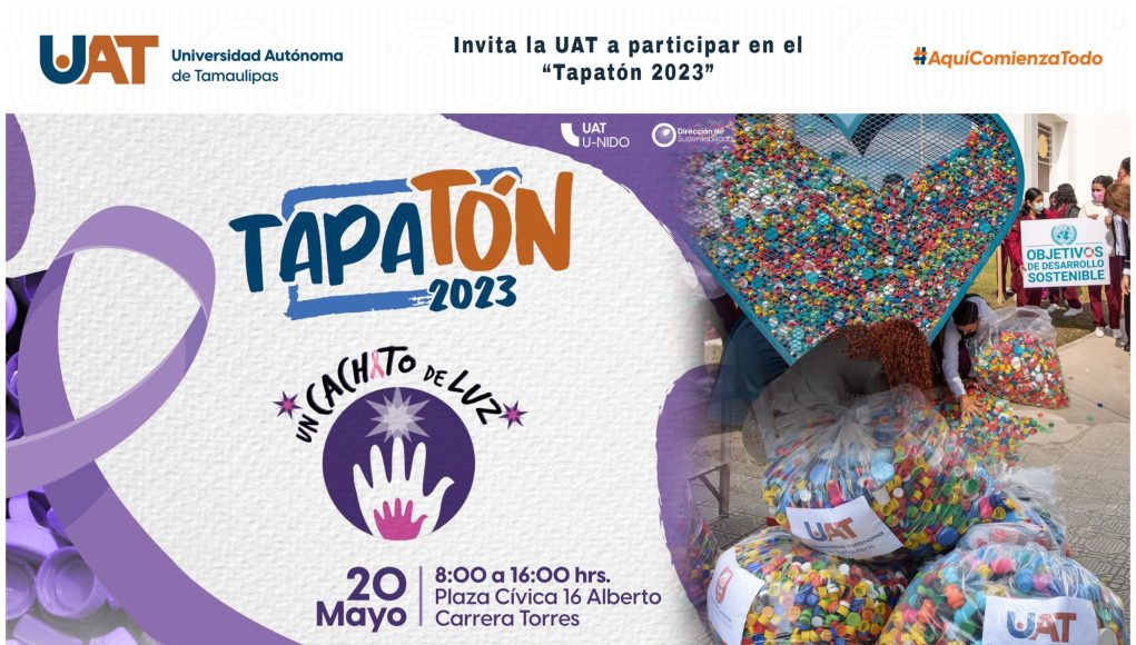 Como parte de las acciones que la Universidad Autónoma de Tamaulipas (UAT) implementa para crear conciencia sobre el adecuado manejo de residuos y su aprovechamiento en apoyo a personas que más lo necesiten, invita a la comunidad universitaria y sociedad en general a participar en el Tapatón 2023, que organiza la Asociación “Un cachito de Luz”.