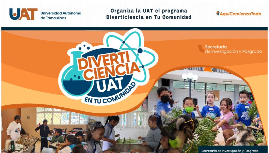 La Universidad Autónoma de Tamaulipas (UAT) invita a sus docentes, investigadores y estudiantes a participar en el programa Diverticiencia UAT en tu Comunidad, que tiene como propósito acercar el conocimiento científico que se genera en esta casa de estudios a niños de escuelas primarias de zonas vulnerables.